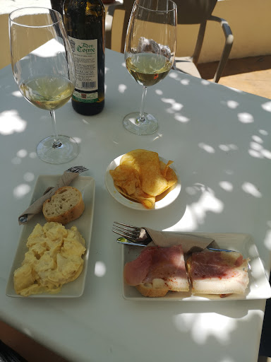 Sitio recomendable en líneas generales, una terraza bonita debajo de una parra (también se puede comer dentro). Recomiendo en verano no comer fuera porque madre mía esos 38 grados pegaban fuerte, aunque estaba a la sombra.