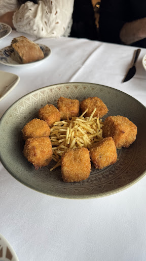 We made this reservation last minute and we didn’t know what to expect but we saw pictures of the restaurant and decided to go for it. What a wonderful decision. First the hotel has a Michelin star from 2024 and it is absolutely true. the room is very clean very spacious, the only complaint would be that the AC is not on because we were told that it’s only set up for heat at the time we made the reservation in late May, and the toilet seemed to be a little bit loose. We went for a walk around Rabade, very quiet small town that we fell in love with. For dinner at 8:30pm, we went to the restaurant, and they took us to the asador. At the Asador, the service was incredibly efficient and kind like we’ve never experienced in Spain. The menu is delicious. We started with artichoke hearts with jamón ibérico salt, delicious. The main dish was lamb leg that I 100% recommend. It was perfectly cooked. Delicate, tender, juicy. It was a great amount for two people. We had a local Cantabrico red wine. That was good. Bold and delicious. We ended with a house made cheesecake that was...