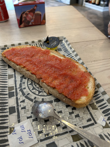 El local no está mal, tiene terraza delantera y trasera pero lo que no tenían en sábado por la tarde es servicio de mesa por lo que nos tocó pedir de pie, y hacer de camareros. Pedimos 6 o 7 cafés y varios dulces (palmeras de chocolate, glaseados, milhojas, palmeras pequeñas…) una de las niñas pidió una galleta y la dependienta me dijo que lo mínimo que nos podía servir es 100 gr. A lo que le insisto que no queremos 100 gr. que es para una niña que ha pedido una galleta y la chica insiste en que lo mínimo son 100 gr. El gesto es muy feo, pon la galleta y cobra lo que sea si ese es el problema. Nos dejamos más de 32 euros y sin galleta. Por cierto calidad mediocre y precio opinar vosotros mismos. Lo de la foto es muy pequeño, son 2,50€ y no está ni bueno. La próxima vez,...