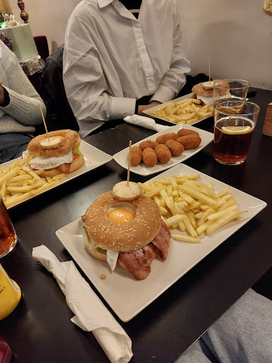 Veníamos de Madrid y no encontrábamos dónde comer, así que decidimos investigar por Google Maps y nos apareció este sitio. Echamos un vistazo a la carta, a las imágenes y a las reseñas y decidimos venir. Al entrar es cierto que no parece un sitio donde vayas a poder comer, pero a mano izquierda subiendo un par de escalones hay un pequeño espacio con sofás y mesas para comer. Era confortable y cálido el lugar, ya que la decoración te permitía sentirte como en casa. Pedimos unas croquetas de entrante y 3 hamburguesas. Las croquetas no fueron mucho de nuestro agrado, pueden pasar desapercibidas. Sin embargo, las hamburguesas estaban buenas y no eran gigantes, pero tampoco pequeñas. Creo que fue el dueño del local quien nos atendió y fue súpersimpático y atento, nos dio sugerencias y lo agradecimos. No le doy 5 estrellas por las croquetas y porque una de las empleadas (una mujer rubia, creo que la cocinera), se acercó a nuestra mesa a preguntarnos si ya sabíamos qué queríamos y le respondimos que no, a lo que nos contestó de forma condescendiente "pues haré la comida de otros antes que la vuestra", y sinceramente creo que es un trato mejorable. Lo compensó el hombre que luego se encargó de nuestra atención, pero no da buena imagen que se responda de esa forma al cliente, más cuando no hay motivo alguno.