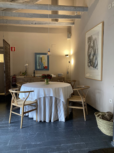 Al entrar, nos encontramos con una pequeña barra y, a la derecha, un comedor al que se accede tras cruzar una puerta de cristal. Al fondo, una acogedora chimenea aportaba calidez al ambiente. Nuestra mesa estaba ubicada junto a una pequeña estantería de vinos, cerca de una escalera que descendía y justo debajo de un alargado cuadro. Además, se encontraba relativamente cerca de la cocina, un detalle que más tarde resultaría relevante.