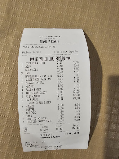 Read moreEl Rebost: una trampa mortal disfrazada de restaurante Comer en El Rebost fue como jugar a la ruleta rusa con mi salud. Pedí una hamburguesa con bacon, y lo que recibí fue un crimen culinario en pan: bacon crudo, chorreando grasa, y una “mantequilla de bacon” tan salada y asquerosa que parecía un desecho industrial. Cada bocado era una mezcla entre decepción y peligro.