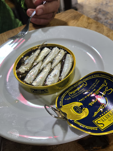 This was one of the most special dining experiences I have ever had and I can't recommend it enough. I try to search for little hidden gems with lots of character and after reading the reviews I knew I wanted to stop here while walking the camino. Admittedly I do not speak much Spanish so I still get a little anxious when navigating social situations. When you first walk in you only see the store. But I asked the owner if he speaks English (un poco) and about the trastenda (from their website) - it's in the back - and he immediately made us feel so comfortable and so welcomed. We weren't sure what to ask for but the owner told us what he would bring and we trusted him completely. We had bread, a white wine with some sardines and a red wine with meats and cheese. Everything was so delicious. The owner was so kind and patient and really made this a personalized and memorable experience. I can only hope to return to Redondela some day so that I may visit again. Thank you so much for your hospitality! I would give 6 stars...