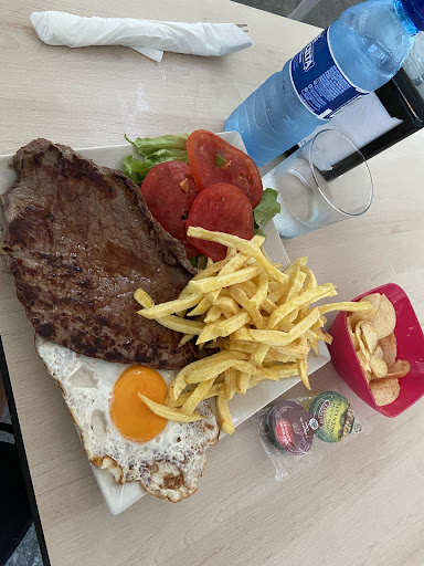 El filete un poco seco pero las patats sin nada de aceite, la verdad que todo muy bueno para los precios que tienen y un servicio muy bueno, atentos...