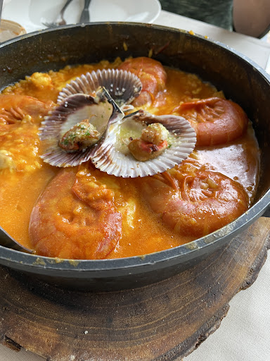 Llevamos años yendo de vez en cuando a comer, siempre hacemos una parada aqui a la vuelta de nuestros viajes a Portugal . Nos gustaba todo : la calidad de los productos, la preparación, el trato del personal, el Menú tanto a la carta como Plato del día, el precio ... El comedor interior con una decoración sencilla, pero agradable con unos toques muy originales y agradables. Hace unos años, cambió el Chef y , aunq no fue un gran cambio, lo fue para mejor. Desde la pandemia todo fue a peor ... Hicieron un comedor anexo en un lateral, que no está a la altura de los otros 2 comedores. Es un local chabacano, mal rematado, sillas incómodas, pintado por un "aficionado" previo recebado de un mal profesional. Tienen la horrible y desagradable costumbre de llenar primero este incomodo y feo comedor y no abrir el más cómodo y bonito hasta q los otros 2 están llenos. Con lo cual, los clientes que llegan más temprano ocupan los peores sitios. En la última Fiesta del Choco, tomamos un arroz con choco, q no nos gustó ... pero lo " perdonamos" porq en dias de tanta gente es difícil encontrar el punto al arroz. El pasado domingo ya fue el colmo . Un " pulpeiro " en la acera con su mesa montada con los platos y demás elementos ... pantalón corto, y fumando, al ladito de la mesa . Cualquier inspector de Sanidad le hubiese multado. Nos pasan al incómodo comedor exterior, estando vacios los otros, donde había 3 mesas ocupadas, otras con el cartel de " Reservado"... Fueron llegando clientes, al igual q nosotros, sin reserva. Los fueron colocando a su antojo ... A nuestro lado una mesa redonda con 8 personas, sin la más mínima educación ni respeto porvlis demas, hablando a voces, riendo escandalosamente ... Nos atendieron 4 personas , como en un restaurante de 4 tenedores : el primero tomo nota declas bebidas, otro trajo el pan y bebidas, una señora tomó nota de los platos ... tomamos Menú del Día , realmente bueno ( vieiras, solomillo a la pimienta, arroz con bogavante, postre, bebidas y café ) , 25€ . Todo muy bien preparado, bien servido... El 1er plato llegó enseguida, el 2° tardó bastante ... el postre lo reclamamos varias veces ... Mientras, una mesa larga de 8 ó 10 comensales, reclamaba sus platosc... al tiempo, 2 comensales q llevaban un buen rato esperando y soloble habian puesto el pan, se marcharon cansados de la espera ... Ya no pudimos esperar por el café porq se habria hecho de noche. Una experiencia horrible por culpa de una mala gestión . La carta sigue siendo buena , la materia prima fresca y bien cocinada , el servicio muuuuyyy leeeeenntoooo , los precios buenos .... La estrategia de llenar primero el peor comedor es muy mala estrategia ... Si no tienen clientes suficientes para llenar todo, los clientes se iran con la idea de q tienen unos comedores feos e incómodos ... Del mal comportamiento de los clientes maleducados no podemos culpar a la gerencia , pero hay q teber en cuenta q , a veces, los clientes nos comportamos según el local y el trato nos " condiciona" ... hay q tener muy poca educación paea levantar la voz y carcajearse en un comedor limpio, fino, discreto, ordenado .... Sentimos menos habernos quedado sin un restaurante en el que nos sentiamos tan a gusto. Les deseo...