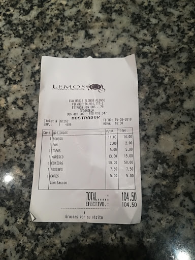 Here it is: At around 15 years ago I went to the restaurant Lemos with my husband, it was my first visit but never the last. The mains were amazing with caught fresh daily which is reflected in the taste of the food, it was impressive. I can say for certain we have always been happy with the side dish and the service, it was amazing. When my husband and I arrived at the restaurant at 2 o'clock, we didn't even have to wait a minute, our table was already just waiting for us. We were greeted by the owner who gave us a remarkable welcome. It was almost like they were happy to see us. We were seated at the table by the window, and we could appreciate the garden and enjoy the fresh air from outside. The whole place is impeccable clean and smells pleasantly fresh, somewhat making you feel quite comfortable. Although the menu was on the table we didn't have to order, the staff knowledge of the menu and the produce available and they're happy to make an amazing dish for you off-menu. You can appreciate that the whole team is proud of their functions and evermore, they are proud of their food and produces. Firstly we were served local wine and fresh artisan bread, made by local bakers. Continuing with a delicious cod pie with raisins and we continue with the seafood, small crabs and crayfish, all fresh. Arrival at the main course we delight ourselves with an incredible stewed turbot with potatoes, this is one of the main reasons why I keep coming back to the Lemos. I have already eaten many turbot in this style but none like the one they prepare here. We finish the eats and drinks with a delicious variety of desserts of the day, coffees and liquor made by local winemakers.