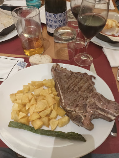 El camarero ( muy agradable e atento) nos anoto las bebidas y las sirvió acompañada de unas olivas cortesía de la casa, seguidamente nos tomaron nota : Medio menú infantil ( macarrones secos) Ensalada con queso Idiazabal ( escasa de todo en general menos de manzana que por cierto estaba cortada del mismo tamaño que el queso Idiazabal difícil de encontrar el queso digo) Entrecot a la brasa, muy bien hecho en su punto.. Bacalao gratinado que no había por donde comérselo ( después del retraso con el que llegó ya que casi habían acabado de cenar mi hija y mujer, estaba agrio, el cuenco donde nos trajeron las olivas anteriormente lo rellene del agua de mi plato que había salido del bacalao ) El camarero me lo retiro y me ofreció cualquier otra cosa de la carta pero sinceramente la decepción era tal que pedimos la cuenta y marchamos sin mas..