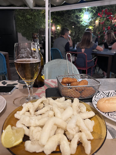 Read moreFuimos a comer un par de raciones, una de rabas y una de pulpo a la gallega, ambas con precio estándar hoy en día, 9 y 18 euros respectivamente. Si bien no estaban mal, las rabas tenían un regusto a aceite/harína quemado que no era muy agradable, además de que no estaban bien limpias ya que estaba la típica tela gomosa del interior y se les quedó un trozo de la pluma del calamar (el esqueleto que le da forma el cual está duro); el pulpo sin más, llegó frío pero estaba rico, la queja es que nos llegó con una microfibra blanca de a saber que, en total nos costó unos 32 euros (una cocacola, una Fanta, un colacao y las raciones) el ambiente y la atención están bien, pero la comida (por lo menos lo que yo probe) deja...