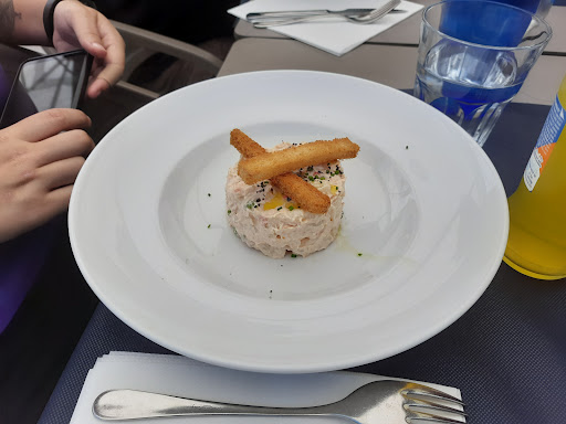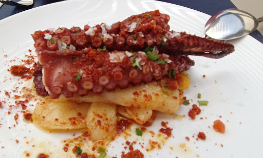 Read moreQuedaos con estas dos palabras: PULPO y RODABALLO. 🤣 El sitio perfecto. Unos platos de restaurante de lujo, en un ambiente más familiar y a unos precios muy buenos. Mucha gente se suele acercar porque tienen un menú del día a 16€, muy económico para la zona. Ese menú tenía muy, muy buena pinta, pero mi marido y yo habíamos visto una foto del pulpo a la brasa en las reseñas, y fuimos de cabeza a por él. Madre mía, madre mía. No sólo es que el pulpo estaba exquisito, es que iba sobre una cama de patatas, como asadas con cebollita, que mirabas al cielo cada vez que te comías una. El pulpo entre tierno y con el toque crujiente justo de la brasa, y un aderezo de pimentón dulce, que gastamos media cesta de pan sólo en mojar la salsita. Pero es que luego vino el rodaballo con gambas. Hay que santificar a quien haya cocinado semejante manjar y, de nuevo, sobre una cama de esas patatas para chuparse los dedos. Nos comimos la piel del rodaballo y todo. ¡¡ES PEC TA CU LAR!! Ahí fue la segunda mitad de la cesta de pan. 😋 Como bebida pedimos una sangría blanca, que estaba buenísima. Y el postre ya fue gula. 🤣🤣 Un helado de queso, riquísimo, y unas torrijas de brioche con toffe y avellanas garrapiñadas. En fin, una delicia todo. Volveremos...
