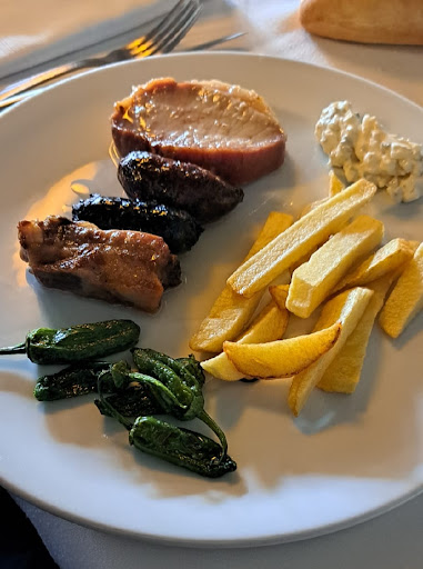The restaurant has a lovely atmosphere, but the service is less desired as we had to wait 45 minutes plus for the waiters to take our drink order. The wines that we wanted (two options) both were unavailable. They suggested another wine of inferior quality and taste. When we went to try it, we mentioned it was too jammy and the waiter continued to pour wine in our glasses without asking whether or not we wanted it. Our meal, tapas and a primer plato also took over an hour. At least a good wine would have made the wait bearable, but alas we couldn’t even rely on that. The food was adequate but nothing noteworthy; in fact, some dishes were quite salty. Definitely not reflective of the high cost. The meal cost an outrageous amount for Spain. If you’re looking for a nice lunch, perhaps look elsewhere. Unfortunately, I would highly discourage...