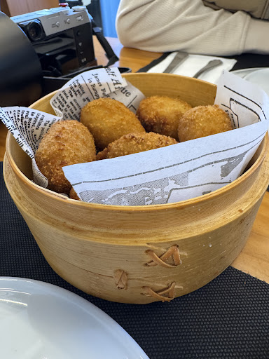 Read moreLlamamos para reservar mesa de ya para ya mi pareja y yo y nos dieron la última de milagro. Al ser fiestas navideñas estaba todo a tope y con razón, al llegar nos sentaron enseguida y nos explicaron la carta de los productos que tenían súper exhaustiva, enseguida nos tomaron nota y sacaron los platos rapidísimos , la verdad que no vimos muchas fotos de la comida en las reseñas y nos daba miedo porque nosotros somos muy de comer por la vista , y vaya tela que descubrimiento, estaba todo riquísimo, las patatas cortadas a mano (que en pocos sitios se ve ya), la carne súper tierna, se deshacía sola, las zamburiñas y las croquetas, esas croquetas son de otro nivel. La única pega que podríamos poner era que el pulpo estaba un pelín duro. La tarta de queso nos encantó también además del trato , estuvieron súper pendientes de todo en cada momento. Entiendo perfectamente que no quedase ni una sola mesa libre y aún así no dejaban de entrar grupos y familias preguntando por mesa. Recomendadisimo después de ver el bonito pueblo de ribadavia.