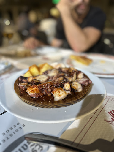 The delightfulness of Ribadavia is only enhanced by a visit to this Tapas bar. We sat out on the terrace and were attended to by a very friendly waiter and waitress. We didn't speak Spanish, they didn't speak English and it didn't phase either of us. The menu is very simple, easy to understand with the pictures and reasonabky priced. They only really serve one "main meal" which is a delicious grill of potatoes, steak and mushrooms. The sala with prawns that we had also was really enjoyable, lots of unusual flavours and textures that really worked. The whole ambience sitting outthe front watching teh workd go by while drinking local wine and eating amazing food was a a memory we'll hold onto. We are in the area for 2 months so we will definately go back and try some of the meat and cheese...