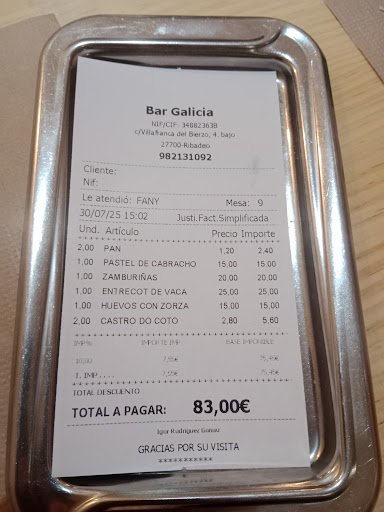 Read moreAfter reading many positive reviews, with an average of 4.5 stars, we were expecting much more. The food was bad: the pulpo al ajillo was excessively salty (this coming from my wife, who likes salty food), the pimientos de padrón were burnt and bitter (after eating excellent pimientos de padrón about a dozen times in Galicia, this was a disappointment), and the pastel de cabracho tasted meh. We ended up leaving half of the pastel and pimientos uneaten, and my wife had two beers to wash off the salt of...
