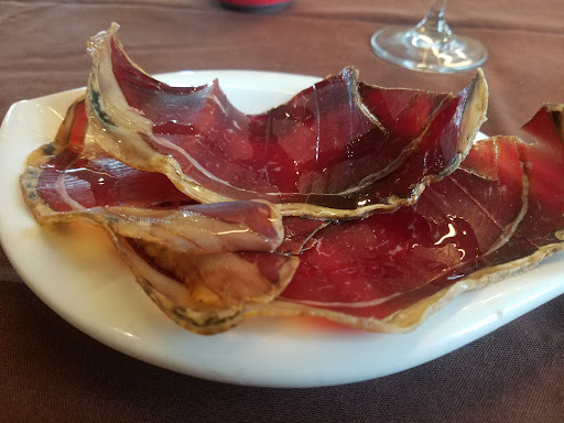 Al sentarnos nos han invitado a un picoteo de cecina, que por cierto como todo, estaba buenisima.