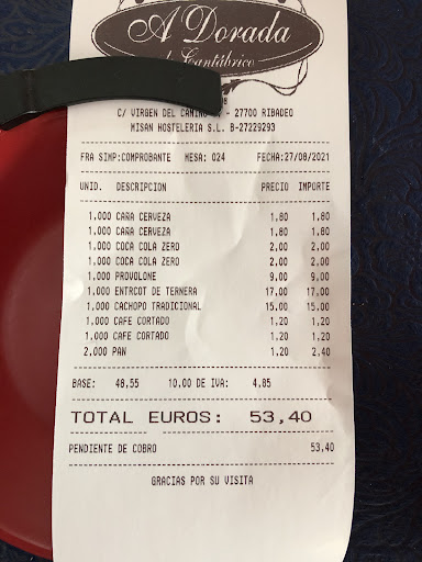 Read moreReservamos en este local para comer. Cuando llegamos al sitio nos sentaron y nos trajeron la carta del menú, pero pedimos la carta del restaurante. La comida fue correcta, aunque por el precio quizás un poco floja. El provolone que pedimos de entrante cuando lo trajeron ya estaba medio frío, luego, llegaron los principales. Un entrecote, el cual no nos pidieron el punto de la carne, tenía mucho nervio y grasa. El otro, un cachopo, era una fina lámina de carne rebozada que casi tenía mas jamón serrano y queso que carne, tenía toda la pinta de cachopo congelado. En cuanto al trato del personal, en general un trato bastante dejado, sólo se salva uno de los camareros, que estaba bastante atento y preocupado por la clientela, los demás bastante pasotas...