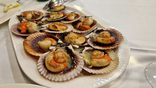 Read morePreguntando a muchas personas de la zona, este restaurante se repitió por varias de ellas. Y buscando en Google y TripAdvisor salía muy bien parado. Por lo cual fuimos a comprobar la fama. El restaurante tiene dos salones y mucho personal. El servicio, sin ser simpáticos, son atentos y rápidos. Pudimos hablar con el camarero que nos aseguró que el marisco es muy muy fresco y de captura, ya que pedimos centolla y al ser agosto (mes que está prohibida su pesca) no tenían. 👍🏻 Recomemdable: mariscos, arroces caldosos con marisco y las carnes por lo que logramos averiguar y comprobar. 🍽️ Los platos cumplen bien en cantidad, calidad y precio. Platos en el orden de las fotos: 🔥 Zamburiñas: grandes y riquísimas Almejas a la marinera: buen tamaño, calidad y muy buenas. Tienen un toque picante que hace que mojes pan y hagas "barcos" cuál buen armador. Choquitos: bien hechos, tiernos y sabrosos. 🔥 Tarta de pera: más bien la repera mimonera. Un espectáculo. No has probado nada igual.