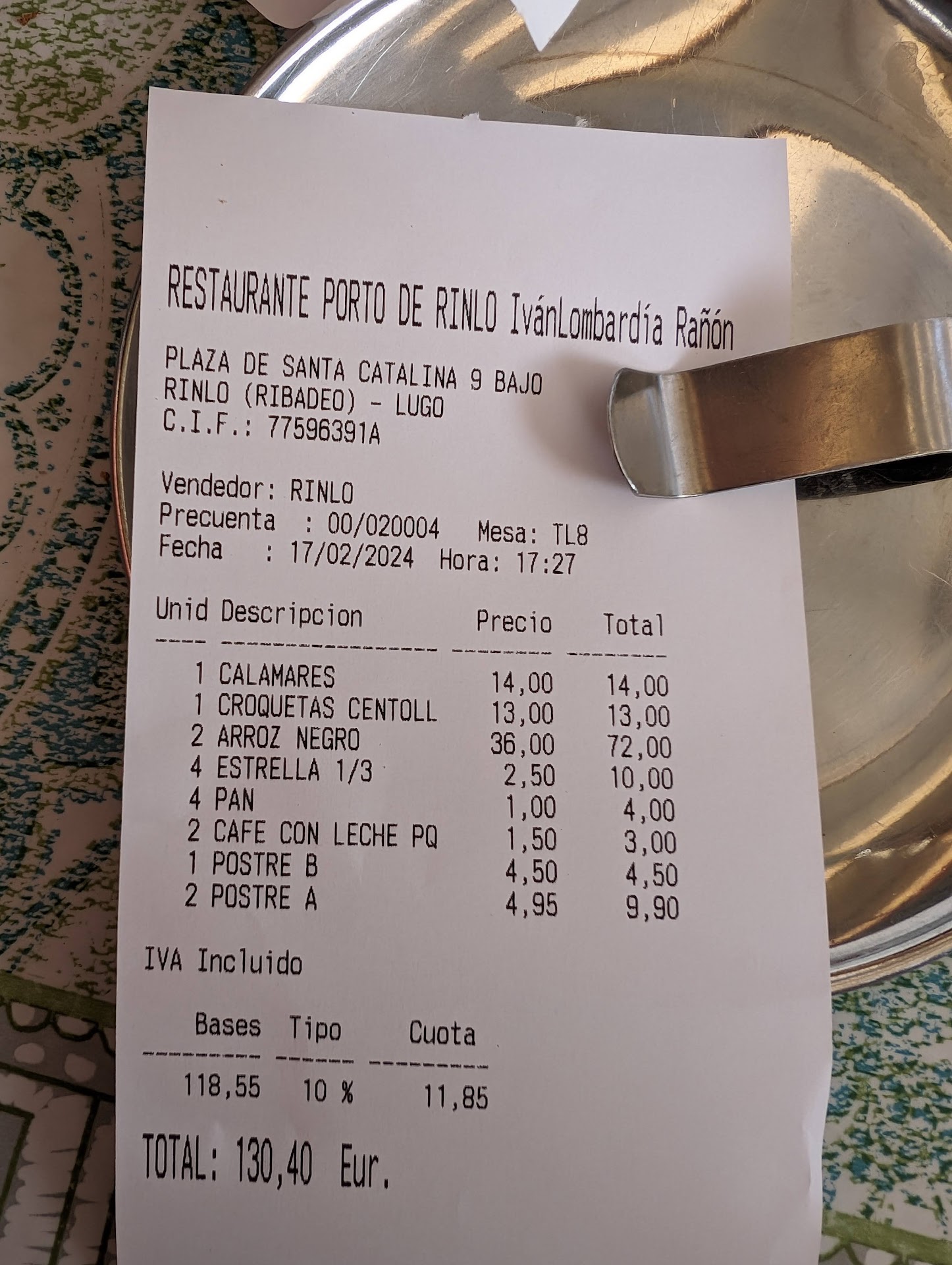 Una vez celebrado el almuerzo, los cafés decidimos encaminarnos al local propiedad también de la familia de Iván, Amar Do Rinlo, inmueble rehabilitado de dos plantas, donde incluye una terraza o zona chillout que permite tomar el vermut, el café después de almorzar o alternar en el final de la tarde o noche. El comedor exterior está protegido por los edificios y permite la estancia en un régimen correcto de temperatura y comodidad con el mobiliario y oferta disponible.