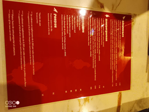 La comida, bastante simplona, con poca variedad (15 platos de huevos, 4 raciones y 2 tipos de hamburguesas y perritos) y las raciones justitas: las patatas bravas con queso azul no saben casi a queso; y lo que mas abunda en la carta son huevos fritos; en todas sus variedades-con chorizo, lomo, pechuga de pollo... pero huevos fritos al fin y al cabo. Y por el precio de un "plato combinado" de esos compras casi 3 docenas en el super (que al precio que estan los huevos ahora, te sale hasta rentable tener 36 huevos que no 2 fritos). Ah y las patatas fritas antes eran hechas a mano, ahora parecen congeladas de lo insipidas que son.