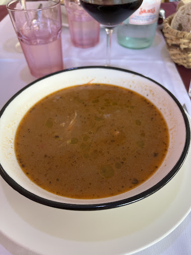 What a quirky, wholesome and professional restaurant with a great attitude towards homely food. Obviously with history. We thoroughly enjoyed our menu del dia lunch there today with the 4 of us (€19 Including wine, water and bread) which is excellent value for the quality of food and friendly service. We chose the fish soup to start, which can only be described as heavenly. We were so impressed with the starters that I totally forgot to take photos of the main courses, which were equally excellent and very enjoyable. We chose anchovies in garlic and pork secreto. Desert was home made cheese cake and lemon moose. Delicious! The chef certainly takes pride in his restaurant. We...