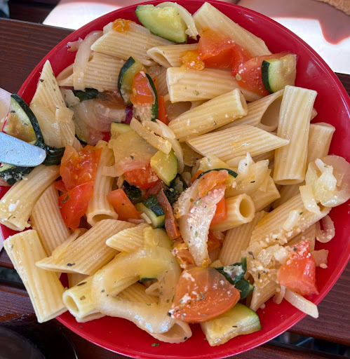 No te dejan comer en las mesas que hay como zona común en la parte de arriba y te miran mal para que comas en su restaurante el cual tiene poca variedad y es caro. Me cobraron hasta el agua, no te daban ni un vaso de agua.