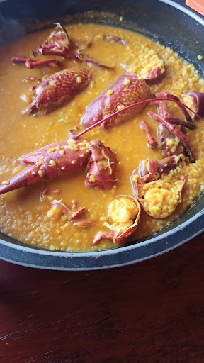 Eso nos engancho ya 100 % y está claro que había que vender el producto pero habia algo más , un plus de "cariño" que no estaba escrito en ningún guión. Bueno al lío de la comida. Pulpo exquisito y arroz con bogavante. IMPRESIONANTE!! Los postres muy bueno tanto la filloa como la crema de mango. Recomendable 100% Mencionar también al resto del personal que estaban siempre atendiendo con la sonrisa puesta y...
