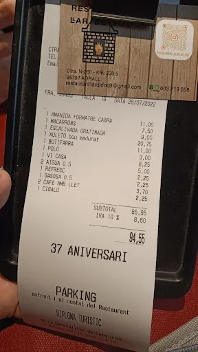Preus i menjar 94€ ( 3 adults i 1 nen, però només 1 primer a compartir i un segon per cadascú. Sense postre. )