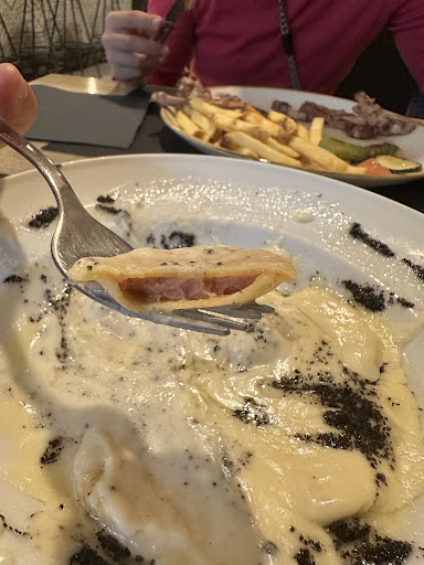 The portion is small and like everyone says the price doesn’t match with the quantity. The pasta sauce is a mixture of cheese powder and there is no taste for the truffle… not sure if this is a traditional Spanish dish…