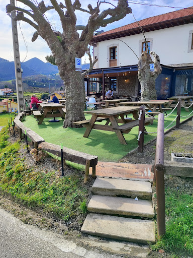 Sobre un alto del camino, las vistas que ofrece el local son preciosas e idílicas. El local tiene una terraza delante, donde, si hace buen tiempo, da gusto estar, aunque parte de ella está atoldada, lo que permite estar fuera tambien con tiempo menos apacible. Dentro, el local es de lo más acogedor y está puesto con cierto eclecticismo rural muy agradable y tiene una par de rinconcitos muy cucos. También desde dentro se pueden contemplar las mismas vistas, pero esta vez bien recogidos, en un saloncito amplio y muy bien decorado. El servicio es amabilísimo y atento, sin dejar de estar en su sitio. Además tiene buenas sugerencias. De cocina salen, casi al final, a preguntar si es todo de nuestro gusto, lo que resulta una atención especial y bienvenida. La comida abundante, pero no copiosa (¡gracias a Dios!), y muy bien hecha, además ofrece algunas especialidades de la zona como el pantrucu (muy recomendable, sobre todo para los de fuera de Asturias: ¡esas cosas no se prueban pasado Pajares!). La comida en los platos está dispuesta con mimo. Todo el local está ordenado y muy bien conservado. Todo muy limpio. También los baños, donde siempre se oyen quejas, se encuentran en un estado impecable. En definitiva, un local al que merece la pena ir aunque se esté de paso y nos debamos salir de la autopista. Si se va a visitar la Cuevona, pues entones es punto de...