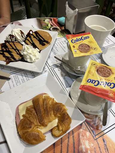 Read moreÉramos dos y pedimos unas tortitas y un cruasán plancha con jamón y queso y dos colacados, la comida en si estaba bien, excepto por las tortitas que las tortitas en si mismas no sabían bien, estaban como con mucha harina y no tenían sabor. El servicio fue pésimo la camarera que nos tocó simplemente se plantó delante de la mesa para que pidiéramos, a mi me hizo repetir varias veces el pedido y nos preguntó lo mismo en repetidas ocasiones, por ejemplo como queríamos la tempereatura de las bebidas. Entenderíamos en cierta manera el trato si el local estuviera lleno pero no era el caso, había apenas 4 mesas de 2-3 personas como nosotras, a parte no dejaban acceder a la parte de las mesas aunque hubiera aproximadamente 15-20 mesas y estuvieran ocupadas 4. El trato tanto de camareros a clientes como entre camareros era fatal, se gritaban entre plantas, y incluso a los propios clientes. En el caso de pagar tenías que bajar a la planta baja y decir tu número de mesa, y esto no sería un problema si ellos mismos no tuvieran las mesas controladas. El único sonido de ambiente que se escuchaba por encima de la música eran los gritos y las discusiones entre trabajadores. En kconclusión buena comida pero no vale la pena por el...