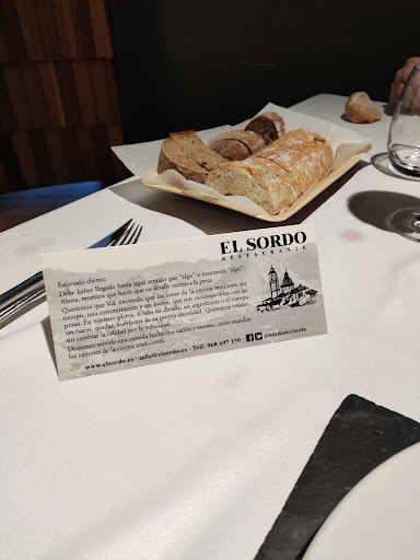Fabulous restaurant in lovely valley town of Ricote. Wine was lush at 23 euros a bottle, service fantastic. Ate (jowl?) tortillas with a tart accompaniment, foie gras in date sauce with pistachio served with a surprise shot glass of sweet sparkling wine, amazing phaesant empanada and a murcian delicacy of pork on puff pastry with hollendaise. The venison steaks with (sweet red wine) fondillon sauce were very tasty if cut too much on the thin side (something they do alot here regrettably). Desert was lovely too, I can't remember the name but almond paste base with a mouse almost coffee but not and not too sweet.! I will definitely return. 120...