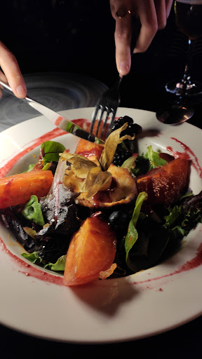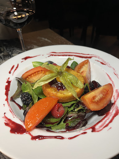 Comenzamos con la ensalada Absoluto, una combinación sorprendente de queso de cabra, frutos rojos y piñones que nos conquistó con su equilibrio de sabores. El carpaccio de gambón también destacó por su calidad y frescura.