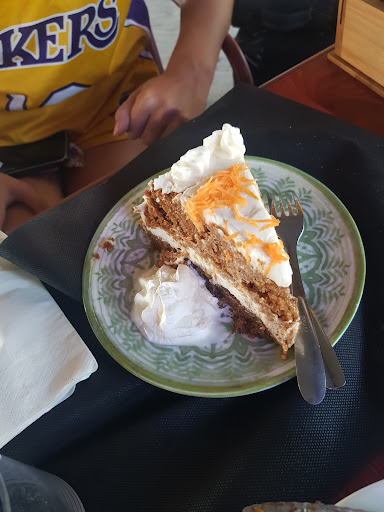 Read moreBuen local, a pie de playa. Hemos estado muy agusto. Llegamos para un café y al final hemos pedido unas bebidas y cenado algo. Hay un escenario con mesas que a veces utilizan para tener música en vivo. Tiene sitio techado y terraza en la arena. Sitio genial para comer y copas junto a la playa. La carta tiene variedad, tanto carne, pescado, entrantes, ensaladas y algunas cosillas de comida árabe. Primero pedimos café y tarta de zanahoria, casera y muy sabrosa, consistente pero mojada, deliciosa al paladar. Después, Alhambra especial fresquita, vino blanco, agua con gas, ensaladilla rusa y pastela de pollo. La ensaladilla rusa muy rica y bien presentada. La pastela no me entró mucho por la vista. De sabor, el relleno muy bueno pero he probado pastelas mejores. A mí me gusta más con hojaldre y crujiente. Después pedimos hummus y pollo con cous cous. El hummus muy bueno y con bastones de zanahoria para acompañar y rodajas de pepino. El pollo muy bien especiado y cocinado. Los platos un poco pequeños para mi gusto, aunque tampoco son muy caros. Recomendable. Me gustaría volver cuando haya música en viva. El ambiente, la música y los...