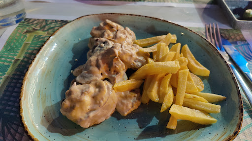 The appetizers, Empanillada and the Artichokes, were delightful – the best Empanilladas we've had so far. The main courses, the Burger De Buey and the Solomillo with Mushroom Sauce, were also good, though we found the fries a tad too greasy for our taste. The main dishes lacked that extra something for a 5-star rating, but overall, it was a very good and well-rounded...