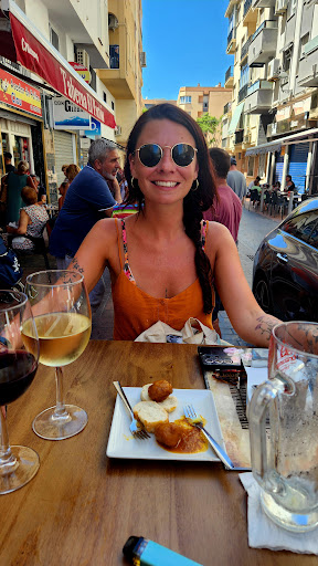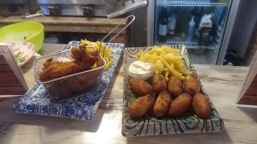 Read moreFantástico local de tapeo que se caracteriza por la buena atención, la calidad y presentación de sus platos y los precios tan ajustados. Con salida a dos calles, en una de ellas encontramos una pequeña terraza con dos mesas altas y en la otra varias mesas convencionales. El interior es pequeño, una barra y cuatro o cinco mesas. La carta nos ofrece ensaladas, croquetas, revueltos, carnes, pescados, malagueñas y alpargatas, entre otras especialidades. Además, hay varias opciones fuera de carta. Fuimos tres personas y pedimos una hamburguesita de buey, media de ensaladilla rusa, media de bulloncitos de rosada (buchones), papas arrugás con mojo picón y bacalao en tempura con verduras wok; con tres bebidas, 28 €. Muy bien, salimos satisfechos y nos encantó lo que comimos: la ensaladilla rusa, la hamburguesita y los bulloncitos, muy buenos; las papas arrugás, de otra galaxia; ni en Canarias las he probado igual de buenas, y el bacalao en tempura, fantástico. Desde luego, se merece la máxima puntuación así como otras...