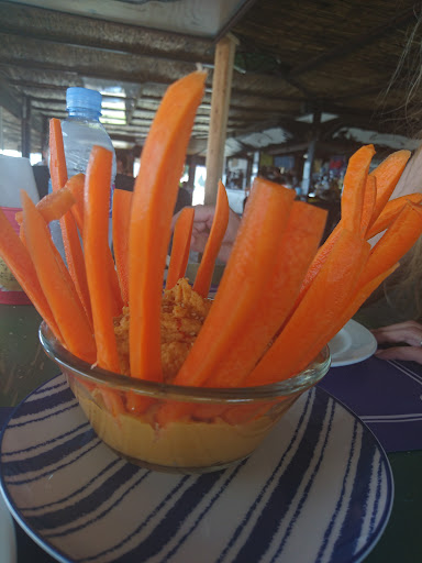 Read moreBuen local, a pie de playa. Hemos estado muy agusto. Llegamos para un café y al final hemos pedido unas bebidas y cenado algo. Hay un escenario con mesas que a veces utilizan para tener música en vivo. Tiene sitio techado y terraza en la arena. Sitio genial para comer y copas junto a la playa. La carta tiene variedad, tanto carne, pescado, entrantes, ensaladas y algunas cosillas de comida árabe. Primero pedimos café y tarta de zanahoria, casera y muy sabrosa, consistente pero mojada, deliciosa al paladar. Después, Alhambra especial fresquita, vino blanco, agua con gas, ensaladilla rusa y pastela de pollo. La ensaladilla rusa muy rica y bien presentada. La pastela no me entró mucho por la vista. De sabor, el relleno muy bueno pero he probado pastelas mejores. A mí me gusta más con hojaldre y crujiente. Después pedimos hummus y pollo con cous cous. El hummus muy bueno y con bastones de zanahoria para acompañar y rodajas de pepino. El pollo muy bien especiado y cocinado. Los platos un poco pequeños para mi gusto, aunque tampoco son muy caros. Recomendable. Me gustaría volver cuando haya música en viva. El ambiente, la música y los...