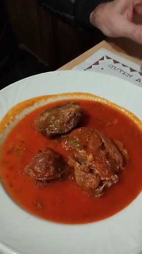 Nos toco comer en el bajo,creo k hay mas partes del local,este bajo en si tiene es olor a posada vieja,con muebles al uso,grandes bancadas alrededor de una mesa de generosas proporciones,solo habia tres mesas porque no cabian mas,lo que da a un estrechamiento de interaccion social con las otras mesas,gente encantadora y bien dispuesta a socializar,todo acompañado de una estufa maravillosa dado que hacia bastante frio,el dueño del lugar,jovial por naturaleza y muy dispuesto a todo lo que se pregunte,en cuanto a la comida no puedo mas que dar un 5,si bien el entrecot no era premiun,aun asi alcanzaba un mas k notable sabor,un sabor que el humilde jamon que nos sirvieron junto a unos esparragos de otro planeta,era de un paladar prolongado y sabroso,lastima que no pudimos comprarlo,pero nos sugerio que en el pueblo de al lado casas bajas lo vendia(lastima que íbamos con algo de prisa),tambien probamos el potage de alubias que con hierbas aromaticas le conferia un sabor unico y potente si cabe,la carrillada si bien no la probe me decian que era muy tierna y sabrosa regada con una estupenda salsa.El vino de la casa humilde de por si,tenia un paladar suave,un cuerpo asombrosamente entero y un sabor afrutado con maderas,una grata sorpresa.Los postres tampoco los probe pero eran caseros y la gente quedo gratamente saciada.No mas que agradecer a Pedro su gentileza y hospitalidad.Si pasais por Riodeva o alrededores,merece la pena sin duda hacerle una agradable y muy...