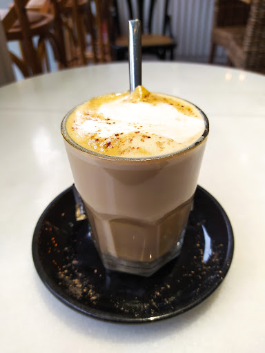 Read moreAtención y servicio al cliente excelente. La dependienta que siempre me atiende por las tardes es muy amable, simpática, atenta y profesional. El café con leche es espectacular, con su espuma y canela por encima (podéis comprobarlo en la foto que he añadido). La bollería es de calidad y muy variada. La ubicación de la cafetería es privilegiada, en plena Rambla de Ripollet, muy céntrica. La decoración del local es muy moderna y acogedora. Los asientos son muy cómodos y tienes intimidad para conversar. El local tiene unas cristaleras muy grandes con vistas a la Rambla de Ripollet. Los precios son muy económicos. Se puede aparcar al lado, en una Zona Azul que hay y tienes 1 hora de aparcamiento gratuito (tienes que poner la hora de llegada con un papel en el salpicadero para que el revisor lo controle)....
