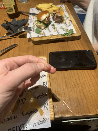 Anoche estuve cenando con unos amigos y decidí pedir la hamburguesa que recomendaban “la ahumada”, entre todos sus ingredientes uno de ellos era el queso. Cuando ya llevaba como 1/3 de la hamburguesa comida de repente empecé a notar que había un ingrediente demasiado duro, me da por abrir la hamburguesa y lo que me encuentro son los trozos de queso con la corteza (que no se dignan ni a quitar) y otro trozo de queso que era sola y exclusivamente la corteza con el papel de la pegatina del queso incluida, me había estado comiendo la corteza del queso con el papel y su respectivo pegamento. Avisé a uno de los camareros y me dijo que lo comentaría, se metió para la cocina y al rato sale una camarera con el queso en un plato y me replica que eso no es papel que el queso no tiene ningún papel ni ninguna pegatina, le indico que perfectamente en el rato que han tardado en salir han podido quitarlo para enseñármelo, pero la sorpresa viene cuando le da la vuelta al queso para enseñármelo y efectivamente por el otro lado tenía el resto de papel pegado a la corteza. Se volvió a meter para la cocina sin pedir disculpas ni proponerme el cambiarme la hamburguesa. Mientras tanto, seguí inspeccionando la hamburguesa para ver qué más cosas asquerosas me podía haber comido y resulta que me encuentro un trozo de papel pegado en toda la carne, vuelvo a avisar a otro camarero y le digo que si de verdad él se comería eso y que si él también ve que eso no es papel, el camarero reconoce que sí que lo es y él sí que propone cambiarme la hamburguesa. Tardaron como 20-25 minutos en sacarme la hamburguesa, y ya me la sacaron en una bolsa para llevar porque el restaurante cerraba y me quedé sin cenar, aún pagándola me tuve que ir sin cenar a mi casa y esperando unas disculpas por parte de los camareros. No son capaces de reconocer su error y encima se ponen a la defensiva e increpan al cliente haciéndole quedar por mentiroso (hablo sobre todo por una camarera bajita de pelo corto que hay), y cuando se confirma que en este caso el cliente SÍ que tiene la razón no son capaces ni de pedir disculpas. Un error lo tiene cualquiera pero veo de ser bastante dejado el no ser capaz de quitarle las cortezas al queso y encima, para colmo, echar las tapas superiores del queso con papel incluido, yo pregunto si ellos serían capaces de dar de comer eso a sus amigos o familiares. Desde luego que experiencia nefasta