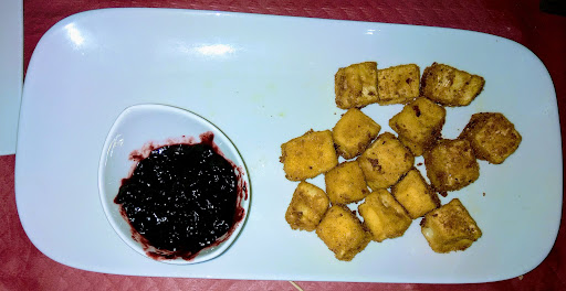 Experiencia buena, restaurante de raciones y hoy tenían 3 platos fuera de carta(fabada, entrecot y chuletón), de estilo castellano y decoración rural tirando a anticuada, Hemos pedido: 1)Croquetas de cecina; ricas pero un poquito más de cecina no le vendría mal, aún así se nota que son caseras y están muy ricas. 2)Ensalada de pollo y piña; le falta algo de sabor, a lo mejor un poco de queso parmesano rallado y alguna especia le quedaría de lujo, aún así parece que las tiras de piña son naturales y el pollo a la plancha estaba bien cocinado. 3)Tiras de pollo con salsa de soja; definitivamente mejor con algo pimienta negra por encima, hay que pedirla pero merece la pena. No hemos tomado postre, el vino de Guadalajara estaba muy rico, las 4 uvas y los 12 meses en barrica 70/30 francés/americano le daba un buen sabor, lo recomiendo. Tendré que volver para probar otros platos. Gracias por...