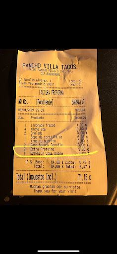 Hemos de decir que los nachos no estaban hechos en el día,algunos al masticar eran chiclosos,queso tipo cheddar liquido por encima.....un total despropósito.Es más si queréis unos nachos en condiciones,con buena cantidad y de calidad en Beeficious ( local a metros escasos de este ) podéis encontrarlos infinitamente mejores,lo cual es fácil, y eso que no se venden como mexicanos pero saben hacerlos.