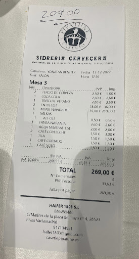 Read moreRaciones abundantes. La calidad bueno, mejorable. Las patatas mixtas las salsas no eran caseras, la oreja a la plancha estaba poco crujiente, los calamares sosos igual que las lagrimas de pollo (esto era casero). La atención recibida por el camarero que estaba en terraza buena, la verdad es que llegamos a las 22:30h y nos avisó que cerraban la cocina a las 23:00h. En cuanto nos acoplamos pedimos un par de veces la carta, entendemos que hemos llegado "tarde" éramos varias personas y teníamos que pedir rápido, pues la contestación por parte de uno de los camareros fue mala, con un tono borde nos respondió "te esperas un momentito", cosas que no entenderé. Si metes prisa a tu clientela responde tú también con rapidez, no? Las raciones las sirvieron muy rápido. Y tuvimos el segundo enganchón con el mismo camarero poco amable del principio...solicitamos la cuenta, pero como éramos varias personas queríamos pagar cada un@ nuestra parte, pedimos al camarero que nos cobrará a cada uno la cantidad, nos dijo un par de veces de muy malas formas que por qué no nos hacíamos bizuum. Tuvo otra metedura de pata cuando pedí que me cobrarán la cuenta correspondiente de dos personas, la mía y la de mi mujer y me dijo que para hacer eso que por qué no habíamos hecho un bizuum que era lo mismo y tal, bueno pues ahí ya le tuve que contestar que solo faltaba que mi mujer me tuviese que hacer un bizuum y que me cobrará los 24€ que le estaba pidiendo. La verdad es que no pensamos en volver ninguna de las 8 personas que...