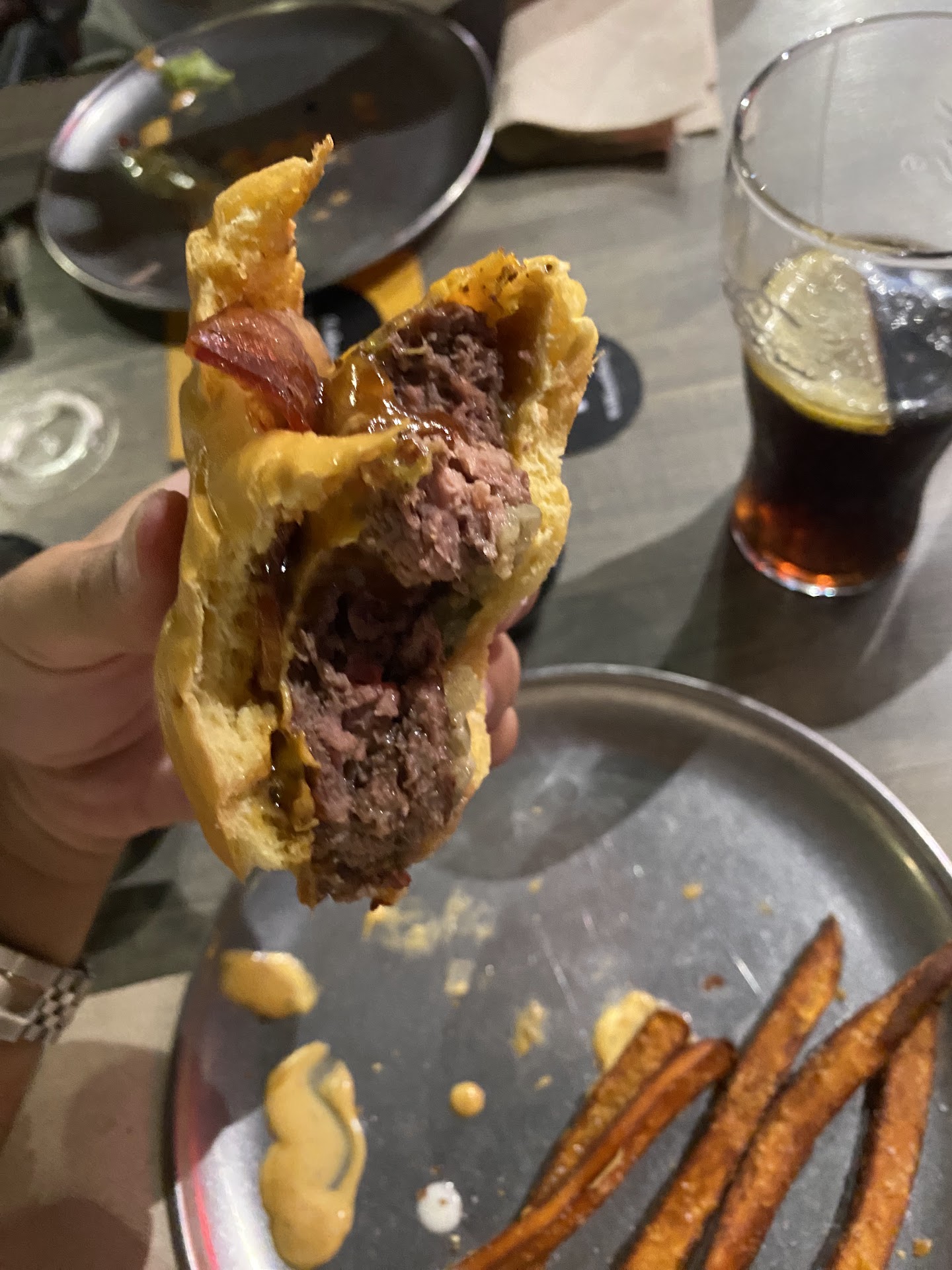 Lo único que destacaría negativamente es el precio, aunque hay que tener en cuenta que está en Rivas, y entiendo que el ticket medio puede ser más alto que en otras zonas de Madrid. Sin embargo el precio de una burguer tamaño medio ( no es pequeña pero a mí una se me ha hecho poca cosa) roza los 10€ al que hay que sumar bebida ( agua 1,50), patatas (+1€ pero son una ración buena) y sumar como en nuestro caso si quieres otro complemento o postre... Se te va a ticket similar a un "Goiko grill" pero sin tener ese servicio de camarero, salida de platos en orden etc...