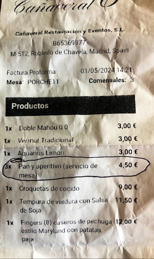Nos dijeron un precio (30€ por menú de adulto en domingo, 17€ por menú infantil) y en la cuenta nos cobraron más sin avisar. Cuando reclamamos, nos responden que nos dijeron el precio sin IVA (incumpliendo así la ley del consumidor). La actitud de uno de los camareros (el más joven, "Javier") fue altiva y rozando la mala educación. Sin embargo el otro fue amable y empático en todo momento. Tenían la comida JUSTITA, no admitían ningún cambio respecto a lo acordado por teléfono. Siendo un grupo de 20 personas, deberían haber tenido un poco más de margen por lo que pueda surgir... Durante los 35-40 minutos de espera por los primeros, solo teníamos pan (sin aceite, alioli ni nada... Pan y punto). La tempura de verduras, bien. Las croquetas, una pena. La dorada, según mis acompañantes muy buena, pero el entrecot solo sabía al vinagre que chorreaban las patatas. El postre, a elegir entre tarta del Súper o helado de marca.