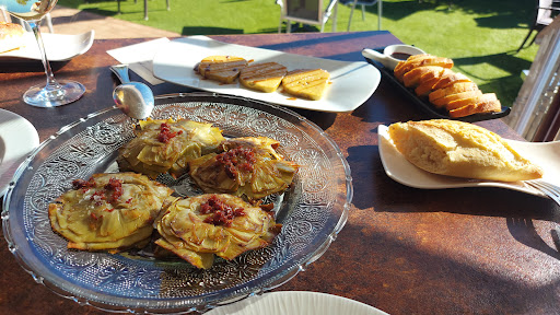 Un restaurante que se supone que es de alta calidad...no puedo estar más en desacuerdo...fui a cenar por estar alojada en el hotel los cinco enebros, tras preguntar por el tamaño de las raciones me dijeron que no eran grandes para mi sola me decidí a pedir por recomendación de la camarera la ensaladilla de pulpo y langostinos, los cuales todavía los estoy buscando y el "pulpo" casi inexistente, básicamente era patata cocida con mayonesa (seguramente de bote) y unos huevos rotos con pimientos de padrón malos, más simple el plato imposible... cobrar 20 euros por eso....una vergüenza y de postre pedí algo de fruta, me traen un plato de fruta variada que he decir que estaba muy buena, pero 8€ por un plato de fruta.... Ah y me cobraron 2'5€ por un pan y un aperitivo que ni pedí, ni me tomé. En total al rededor de 50€ por mal-cenar yo sola. Al día siguiente fui a desayunar ya que estaba incluido en el precio de la habitación(las cuales no son baratas) y el pan de mala calidad, el tomate normal, el fiambre una vergüenza y el café malo....de nuevo lo único rico la fruta. No quise ni el zumo ni la bollería...lo mismo era lo mejor...