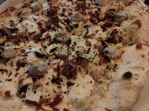 Read moreY de nuevo decepción. No os pasa últimamente, que por muy recomendado que sea un sitio, no conseguís salir satisfechos? Parece que todos los restaurantes sean iguales y ofrezcan lo mismo. Pues bien, este es uno de ellos. El lugar es encantador, la terraza, no tiene nada que ver con el interior, es de un estilo rustico e ibicenco, con vigas de madera blanca, mobiliario rustico y plantas de plástico que han perdido su color, aun asi, muy agradable, aunque las fotos de su web, parecían contar algo más. El menaje correcto, no así los vasos en los que volcar la cerveza, una jarra fría hubiese sido más apropiado. El servicio correcto y el ritmo de los platos lento, algo a lo que parece que nos estamos acostumbrando. Pero voy a la comida, que es a lo que estamos. De primero un provolone boloñesa que estaba delicioso, al menos el poquito que probé, eramos 5 personas y el plato era de un diámetro de 25cm, no digo que eso sea culpa de ellos, pero si creo que debían adaptarlo o el camarero debía indicarlo. Tras 10 min de espera, le siguieron unos nachos con carne dejada caer y piparra, que se suponía que picaba, pero que no lo llegamos a notar. Pedimos 5 pizzas, a tres de ellas se les había otorgado un premio a la mejor pizza y de nuevo decepción. La mía era la Rosa di pistacho, que le reconozco el mérito de innovar con el pistacho, pero poco más. Me resultó pesada e insípida y la trufa a penas perceptible, aunque los hidratos es lo que tienen, que para una vez que sales, que no sobre nada. Las pizzas de los otros comensales, más de lo mismo, La 5 testure, una pizza con panceta crujiente, bastante salada y con la trufa de nuevo tímida o ausente. No pedimos postre, para que? Bueno, 120€ por compartir y disfrutar de un día de mascletá y comida con mi familia, en este sentido maravilloso, pero me gustaría que la próxima vez también acompañase la comida....