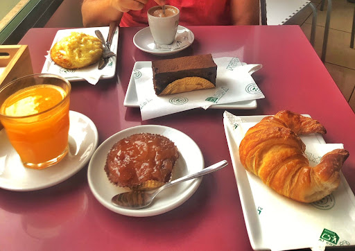 Read moreEstamos aqui en este momento, nos encanta visitar pastelerias. Sorprendidos por el surtido y la calidad. Dicho esto, el croissant y la tatín muy buenos, la especie de ensaimada de crema (digo ensaimada por llamarle de algun modo) estaba bien, y el brownie se salvaba por la parte superior cremosa pero el bizcocho es tremendamente seco. Llamar brownie a un bizcocho seco es un gran error en muchos sitios. Por ayudarles a mejorar, ha de ser mas húmedo o jugoso, añadanle mas grasa y saquenlo del horno antes. Por lo demás, buen...