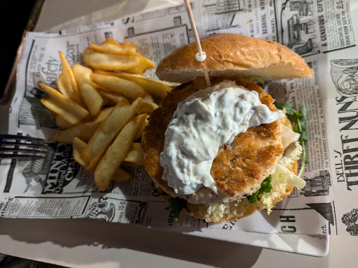 La hamburguesa de Salmón está buena, pero desde mi punto de vista, tiene demasiada salsa.
