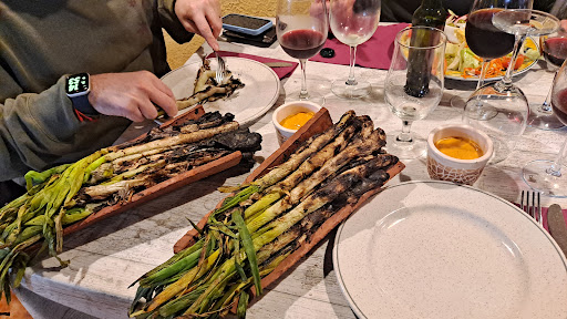 Indignados. Todo hay que decirlo, fuimos al restaurante por recomendación. Ni siquiera vimos la puntuación que tenía y cuando llegamos, porque nuestro objetivo era comer unos calçots, todo apuntaba que era un restaurante típico de la zona de Tarragona en el que podías comer buena carne y buenos calçots. Tienen parking privado que facilita el aparcamiento. Dos turnos de comida, el de la 1:30 y el de las tres. El servicio deja mucho que desear. Parece que sean trabajadores obligados a trabajar el domingo cuando en realidad parece que son los propietarios. Nos pedimos menú calçot de 40 € por persona y los calçots dejaron bastante que desear. Estaban fríos y poco cocidos, o sea, duros. La salsa, bastante espantosa, y eso que éramos el turno de la 1:30. En cuanto a la carne que acompañaba los calçots, yo que soy de carne dejé varias piezas porque no me gustaba ni el xai ni la butifarra. La alcachofa, la peor que he comido en mi vida, hervida más que asada. El vino es el peor brebaje que he probado. Dejamos la botella casi entera. En cuanto al postre, comimos un pastel de queso que se defendía y el mató también había perpetrado un atentado a nuestros cuerpos, igual que el resto de la comida. También se quedó por terminar. A la hora de pagar la cuenta, 6 intentos. así que aunque tarde, sí que fueron fieles,80 euros, aunque no conformes con el precio y el resultado de un menú de bar de carretera...