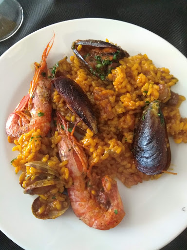 Comimos paella marinera de principal: las raciones buenas. Buen olor y buen sabor. Un apunte: un poco (mucho) pasado el arroz. Se salva por el sabor y el marisco muy bueno.