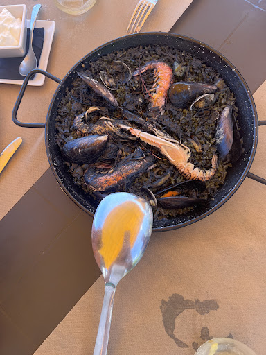 Read moreUna experiencia fatal , el encargado con camisa negra un impresentable que ni da la cara, pedimos de primero unas bravas y una ensalada de ventresca, eran ridículas las cantidades y la presentación. Nos quedamos a cuadros al ver depositar los 2 platos en la mesa. Luego viene la paella, el encargado la trae y la deja en el medio para que nos la sirvamos nosotros, ya se veía algo seca, el arroz duro, la paella en sí...insípida, sin sabor, todos los filos quemados, traía gambas y creo que calamar ó algo similar troceado, sin sabor parecía plástico. Las gambas aceptables. Se lo comunicamos al camarero y éste a su superior y nos quieren dar una copa de cava para tapar el error, nos sentimos muy mal, a los guiris los podrán contentar con una copa de cava, pero nosotros siendo españoles y viviendo en la zona ya muchos años,( era la primera vez que venía aquí,) POR SEGURO QUE NO VUELVO MAS Y NO LO RECOMENDARÉ NJNCA. NO TIENE CALIDAD EN LAS PAELLAS. Muy amable el camarero calvito que nos ofreció de poner un parasol detrás nuestro , pues...